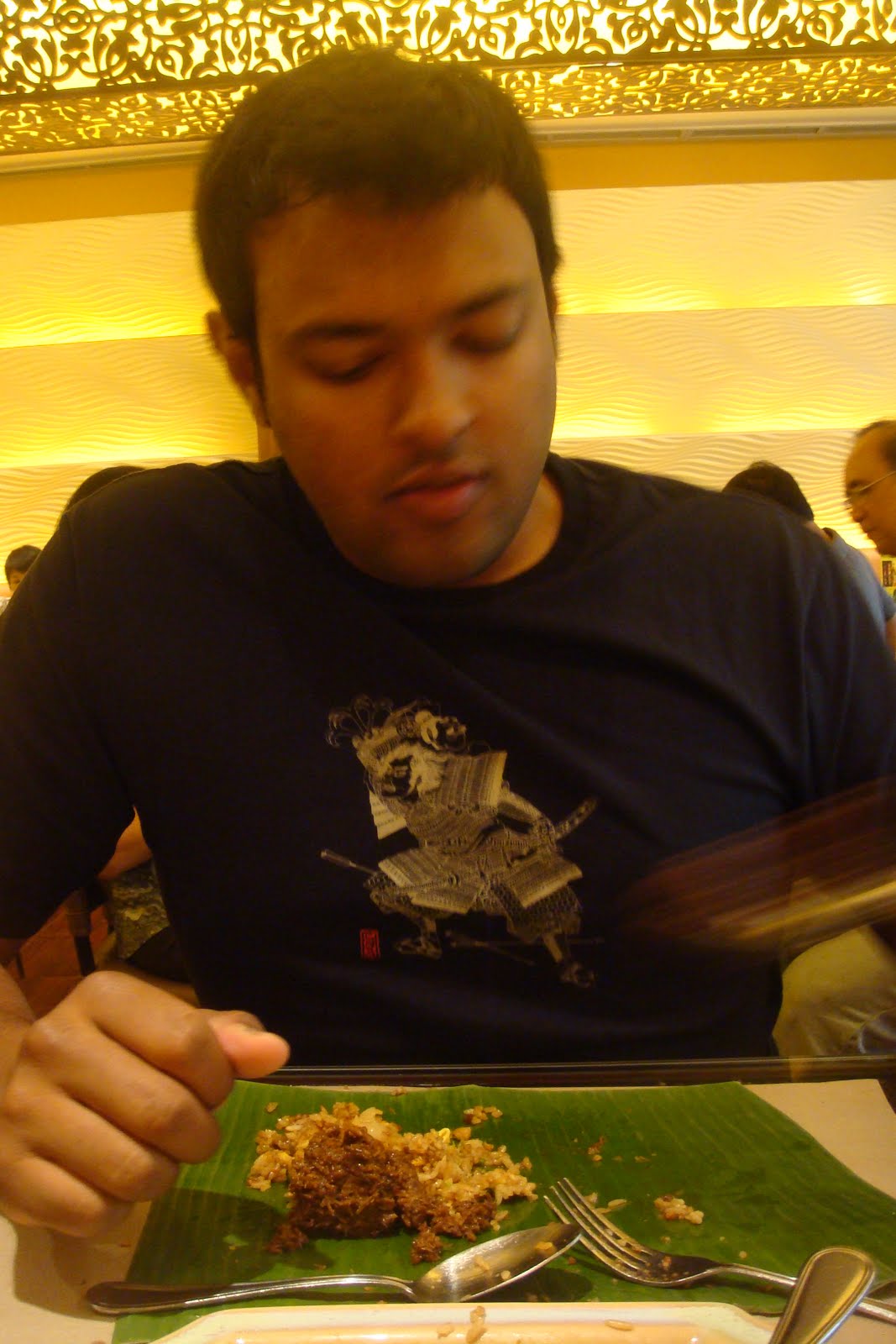 Before eating, Luke asked me if we are seriously eating on the leaf. I told him, that's the idea and that's the reason why it's called Banana Leaf. He had a look around before putting rice on his. :P